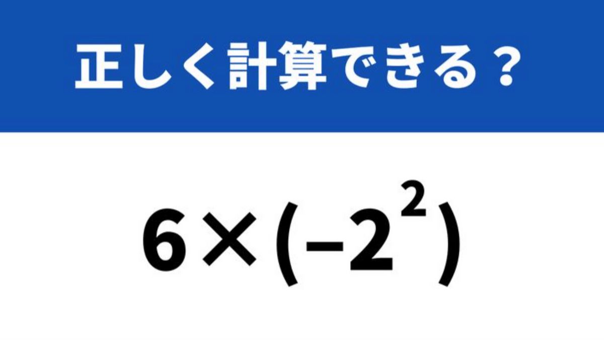 どうやって計算するか覚えてる?「6×(−2^2)」→正しく計算できる?